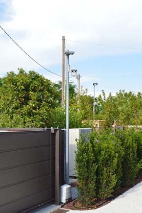 - Sei pali tecnici personalizzati (zincati e verniciati in tinte naturali) contenenti telecamere, moduli input-output, media-converter Ethernet, sistemi anti-manomissione e ventilazione interna.