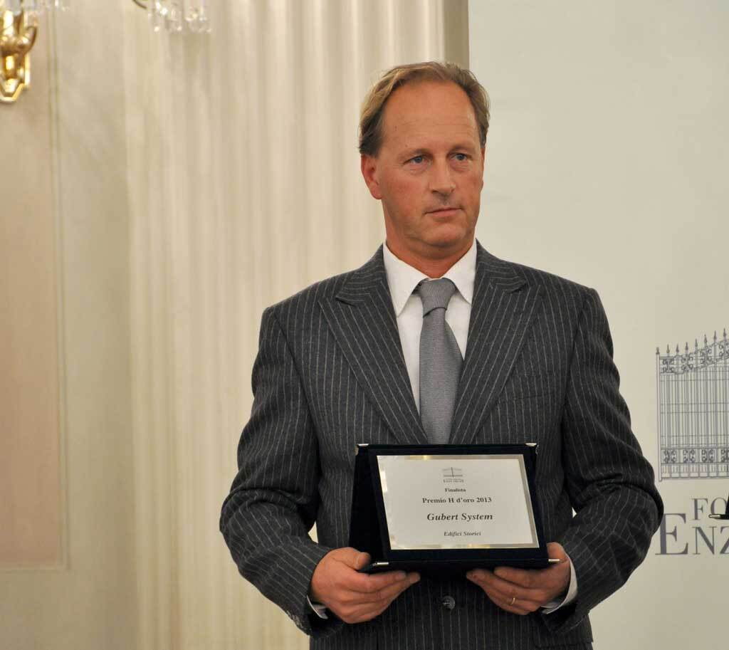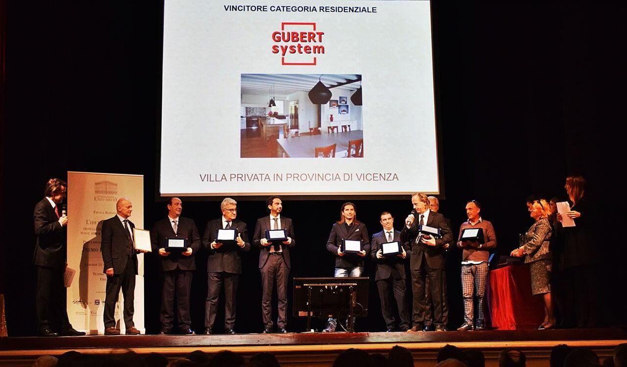 2013 – Finalisti H D’ORO categoria “Edifici Storici” grazie alla messa in sicurezza di una Villa seicentesca Veneta sottoposta a vincolo da parte della Sopraintendenza. Particolare interesse a scuscitato la nostra soluzione di mimetizzazione sensori (verniciature ad-hoc, intagli ed incassi).